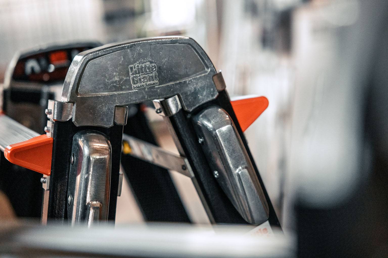 Dank der weit ausgestellten Holme bekommt diese Leiter eine unglaubliche Standfestigkeit.