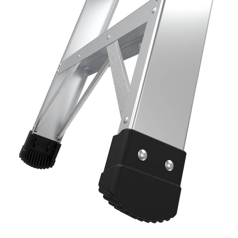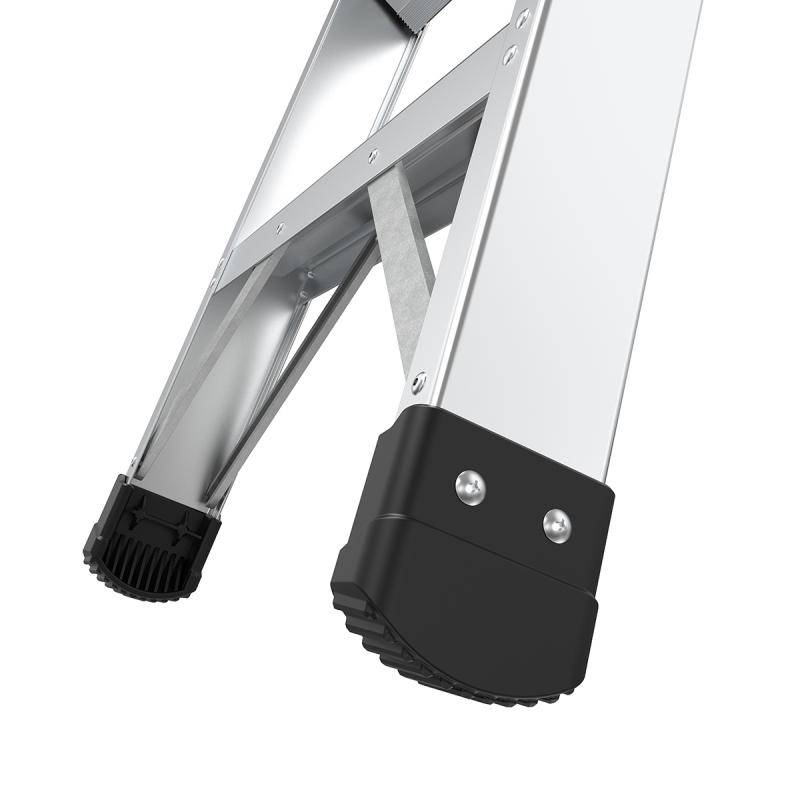 Mit dem praktischen und auch um 180° nach außen klappbaren Stützteil können Sie Ihre Stufenstehleiter problemlos als Anlegeleiter umfunktionieren. Dank der rutschfesten und speziell geformten Leiternschuhe steht diese Leiter sicher an Wänden, Außenecken sowie an runden oder eckigen Masten.