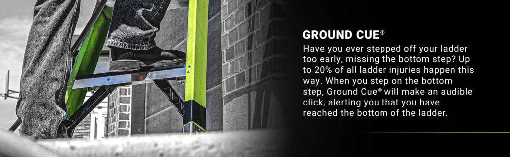 Unfälle mit einer Leiter werden häufig durch den sogenannten “Leertritt“, das Übersehen der untersten Stufe verursacht. „Ground Cue“ singnalisiert dem Anwender beim Betreten der untersten Stufe, mit einem akustisches Signal, dass er diese erreicht hat.