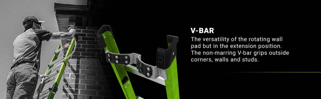 Die V-Bar ermöglicht es Ihnen die King Kombo auch als Anlegeleiter an Außenecken, Wänden, Stangen und Pfosten anzulegen. Somit wird ein Wegrutschen der Leiter vehindert und die Arbeitssicherheit erhöht.