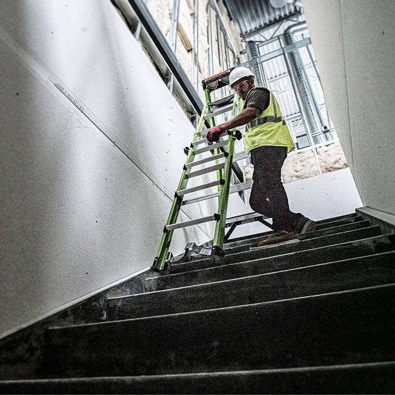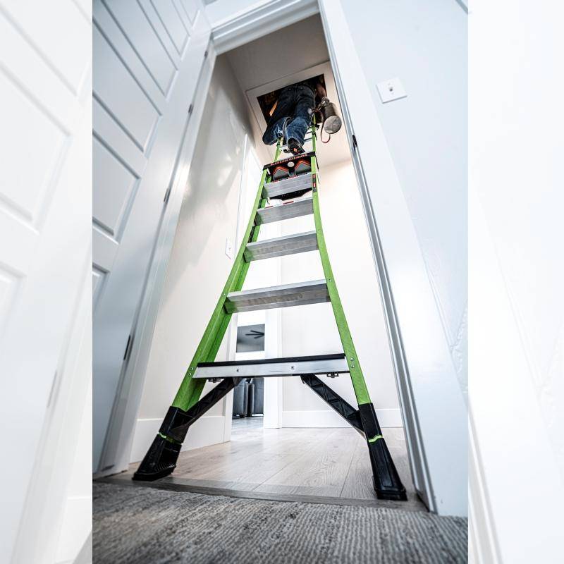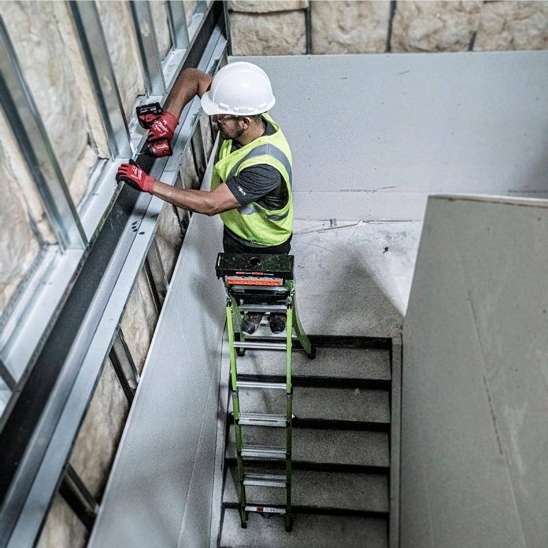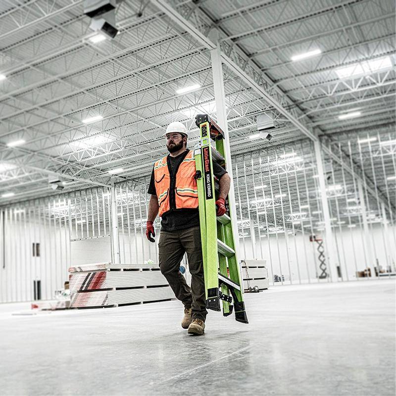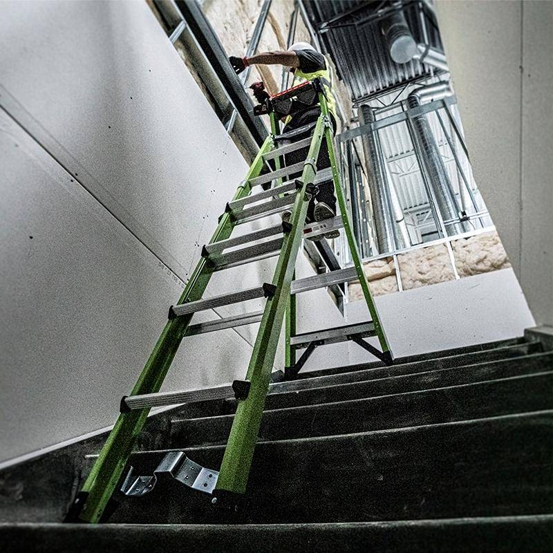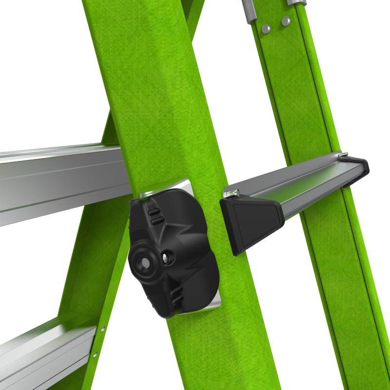 Durch die Verwendung von Fiberglas ist die Leiter besonder für Arbeiten mit Elektrogeräten und an elektrischen Anlagen geeignet. Die grüne Signalfarbe trägt zur Sichtbarkeit der Leiter und damit auch zu Sicherheit des Anwenders bei.