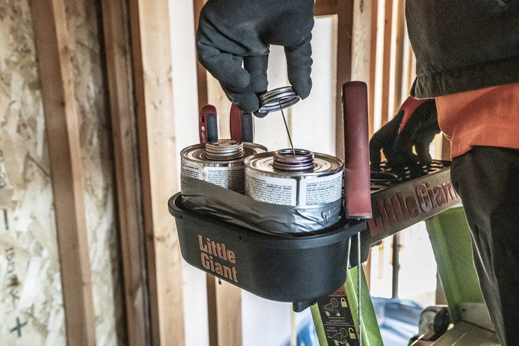 Verstauen lassen sich unter anderem Farbdosen, Schraubendreher oder auch ein kaltes Getränk