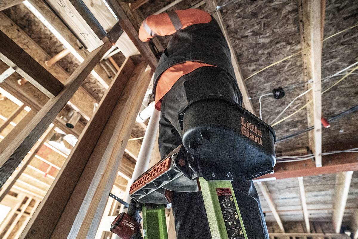 Die LootBox lässt sich seitlich sowie oben auf der Leiter Montierenbefestigen