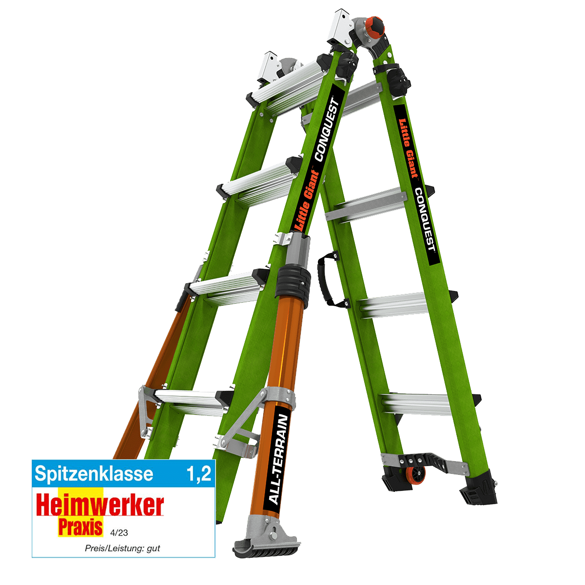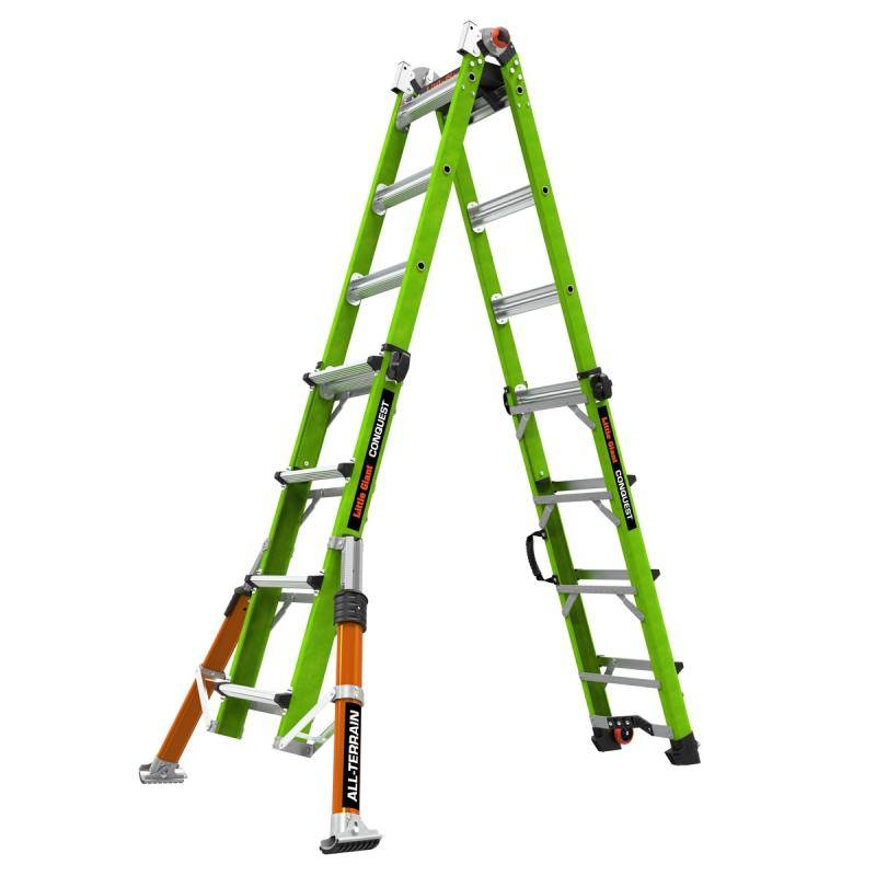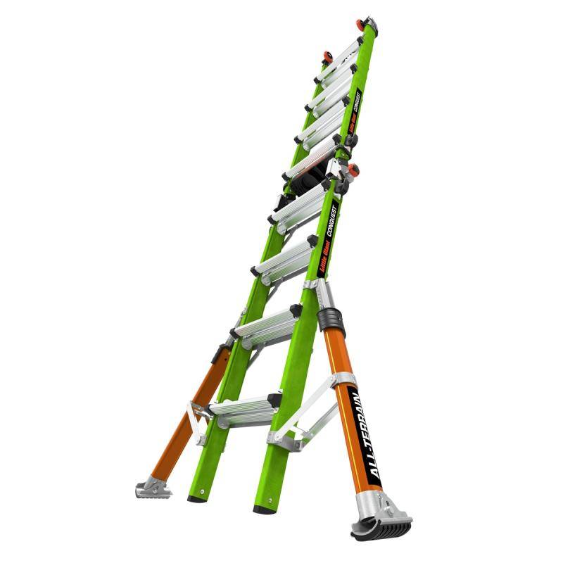 Wie alle Little Giant Leitern ermöglicht Ihnen die Conquest 2.0 ein schnelles und effektives Arbeiten in unterschiedlichsten Positionen. Verwenden Sie die Conquest je nach den Anforderungen der Arbeit als Stehleiter, Anlegeleiter, Treppenleiter oder 90-Grad Leiter.