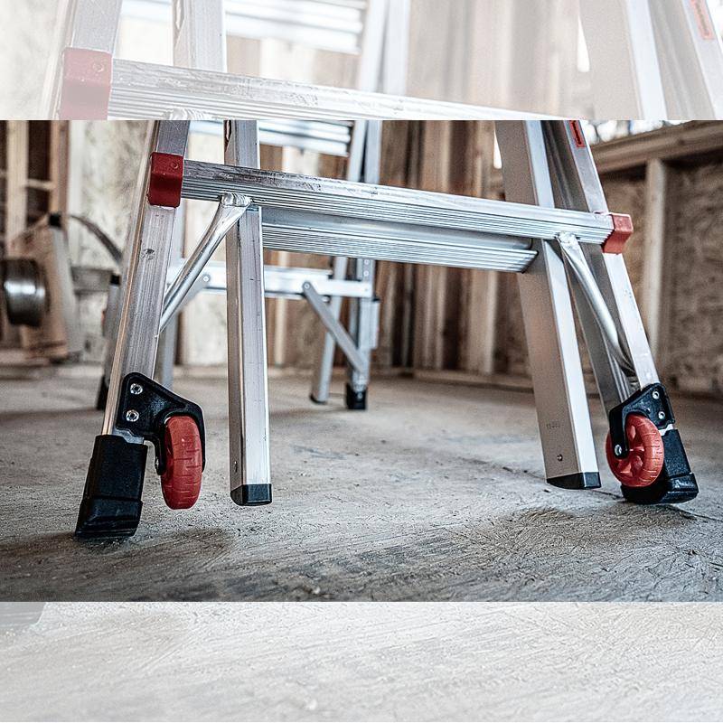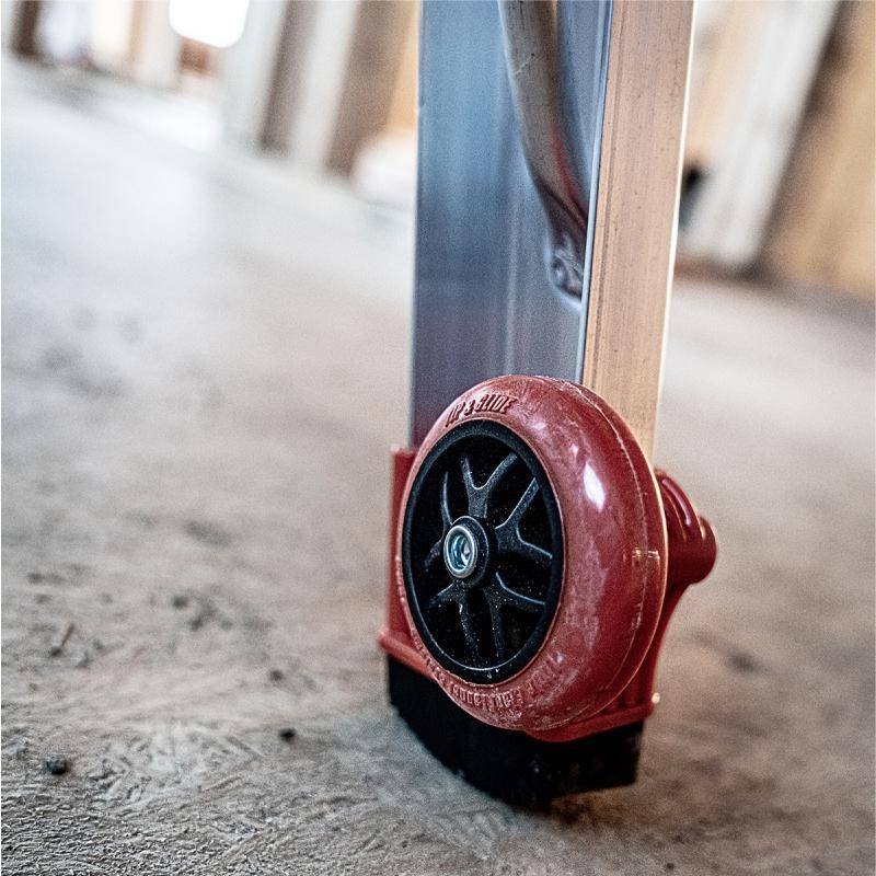 Die Leiter ist mit Tip & Glide Rädern ausgestattet und lässt sich daher einfach und schnell verfahren.