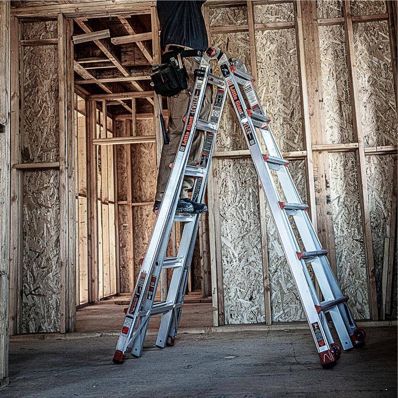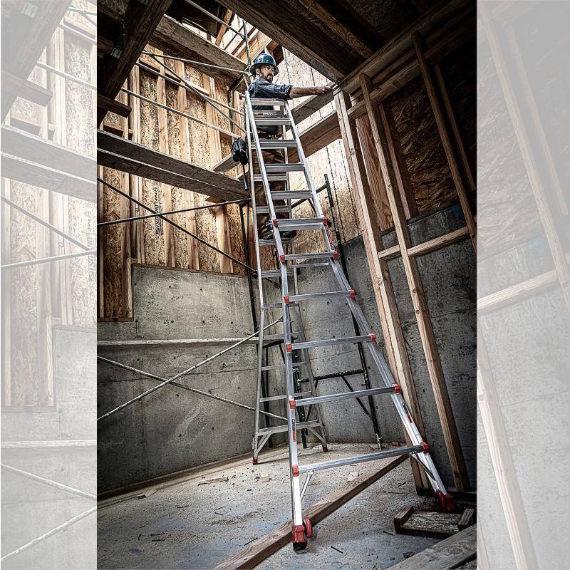 Die Little Giant Leveler ist eine multifunktionale Teleskopleiter mit verstellbaren Beinen. Sie eignet sich ideal für unebene Böden, Treppen und verschiedene Arbeitshöhen. Dank ihrer Vielseitigkeit kann sie als Stehleiter, Anlegeleiter, 90°-Leiter oder Treppenleiter genutzt werden.
