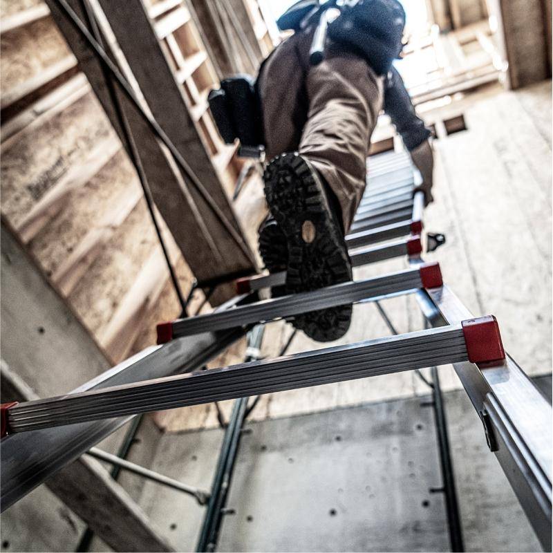 Die Leveler ist für bis zu 150 kg ausgelegt, unabhängig von der gewählten Konfiguration. Sowohl als Stehleiter oder Anlegeleiter bietet sie maximale Sicherheit und Stabilität.