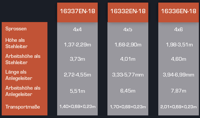 ✅ Vielseitig einsetzbar: Als Steh-, Anlege-, 90°- und Treppenleiter nutzbar.