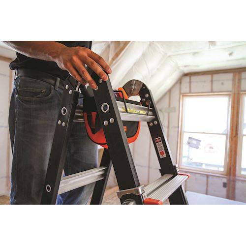 Die Cargo Hold Werkzeugtasche besteht aus ballistischem Nylon und Stahl. Sie können die Tasche an Ihrer Leiter befestigen, um Werkzeuge und Materialien immer griffbereit zu haben.